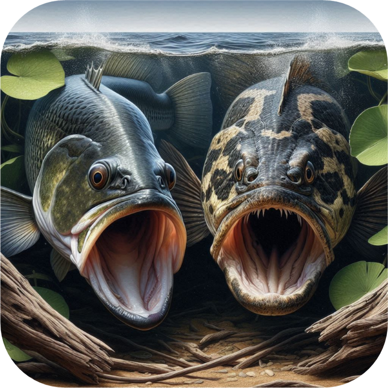 In the back of the lake, where the shallow stumps are, you cast your Pike Pounder. From 10 feet away the water starts to swirl and the V Wake starts heading towards your lure. The hit is a full speed smash. The "Pike Pounder" was designed to hunt Pickerel, Pike, and Musky. The Pike Pounder uses a large or extra large Surface Seducer head combined with a swinging open hook.