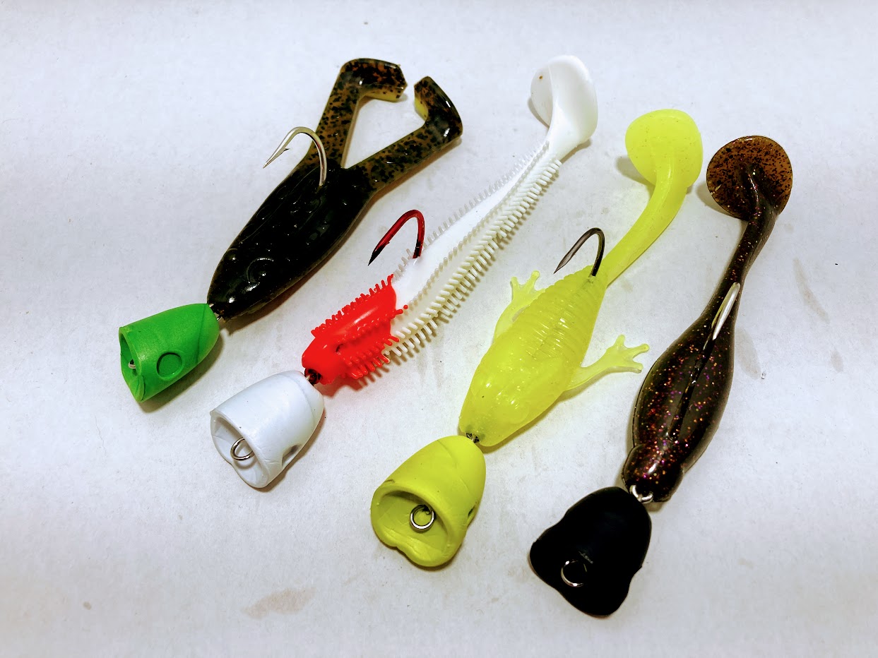 The "Ruckus" is designed to be loud and noisy, with a popper head and swinging open hook. Especially effective with Yum Top Toad or Ribbit or your favorite paddle tail frog. Also pairs well with a Mr. Twister 5" Swimsation paddle tail or Keitech Fat Swing Impact body. Want even more noise? Pair it with a bladed soft plastic body. The open hook is designed for throwing over weedbeds or gaps in pads or anywhere you don't need a weedless rig.